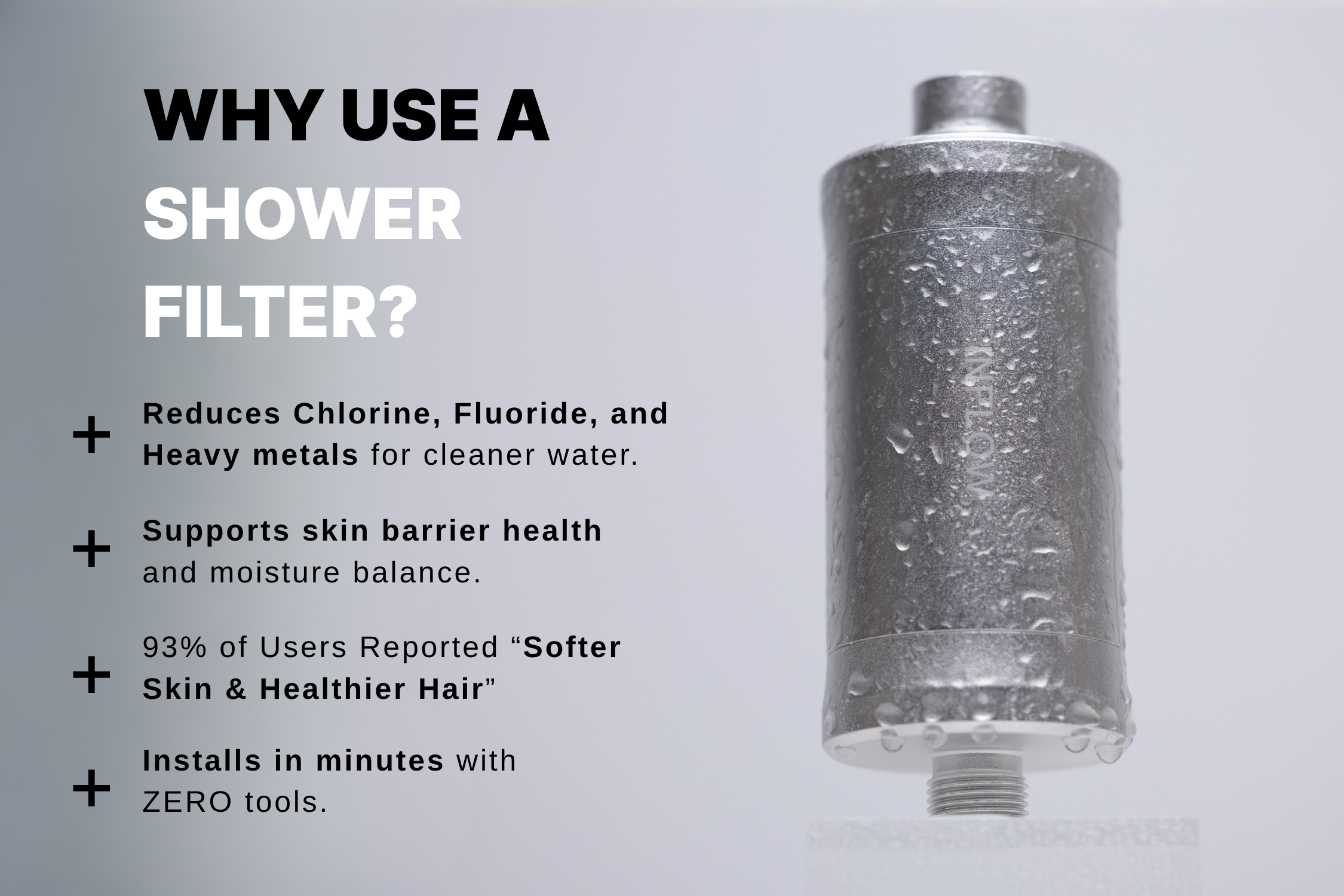Our shower filters reduce Chlorine, Heavy metals, Fluoride (Shower Pod) and other impurities that can dry out your skin and damage your hair. It’s especially helpful for people with sensitive skin or those wanting a healthier shower experience.